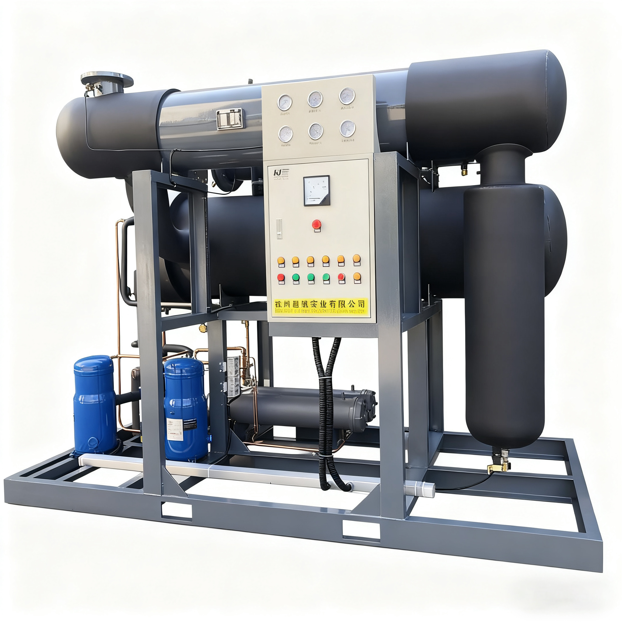 超滤制冷和干燥机基于制冷和除湿原理,并使用完全密封的压缩制冷系统来冷却从空气压缩机排出的压缩气体,从而使其中包含大量的饱和蒸汽和油雾凝结的液滴通过蒸汽和水被分离并通过自动排水排出。饱和的热压缩气体进入冷冻机/干燥机的预冷器,在此与来自蒸发器的干燥冷气体进行热交换,降低温度并进入制冷系统进行蒸发。进行与冷煤的第二热交换蒸汽以使温度接近冷煤的蒸发温度。在这两个冷却过程中,压缩气体中的水蒸气会冷凝成液态水滴,这些水滴会随气流进入气态水。分离器(分离出的液态水)通过自动排水器从机器中排出,冷干的压缩气体进入预冷器,并与刚进入的升高温度的湿饱和气体进行热交换。机场会获得水分含量低(即低露点)且相对湿度低的干燥压缩气体,从而将冷干机排干。冷冻干燥机以其可靠的工作,方便的管理和较低的运行成本,已成为各行业空压站净化设备的首选。